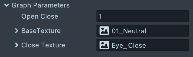Left-click on the material to select it. The Open Close field represents the open or close state of the eyes. Modify the int from 1 to 0. You can see the eye closed in the Preview panel. With the material, only the upper half of the texture will be replaced by the Eye_Close Texture.