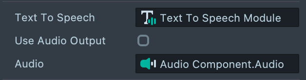 TTS will generate TTS AudioTrackAsset, which can be attached to an Audio Component as the Audio Track asset to play. For more information related to Audio Component, please check out Audio Component and Audio Component API.