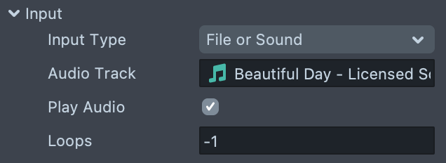 Set Audio Track input with the imported audio file or a Licensed Music from the Asset Library