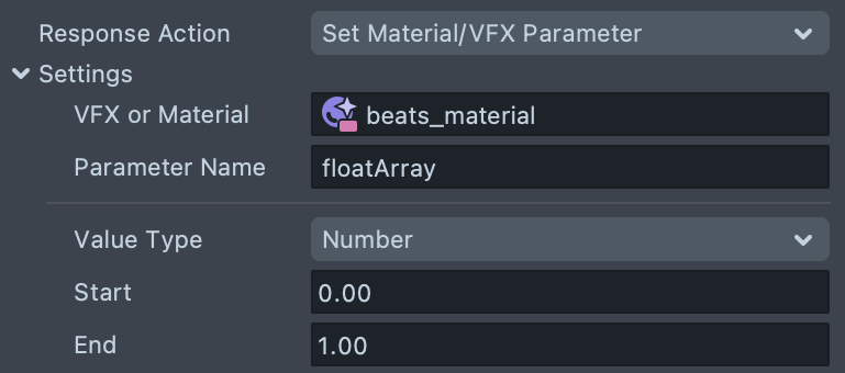 Example: script on the Beats scene object that sets float array parameter from the band values