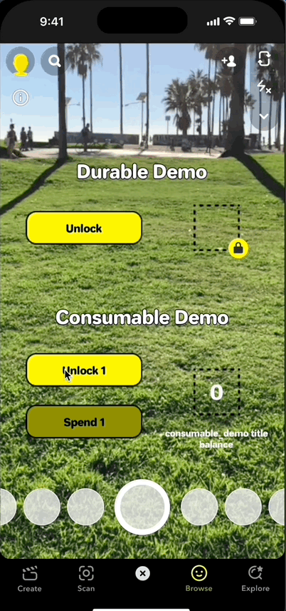 It is critical that you update the Lens UI after a consumable good is unlocked or spent to reflect the digital good’s unlocked state and balance.