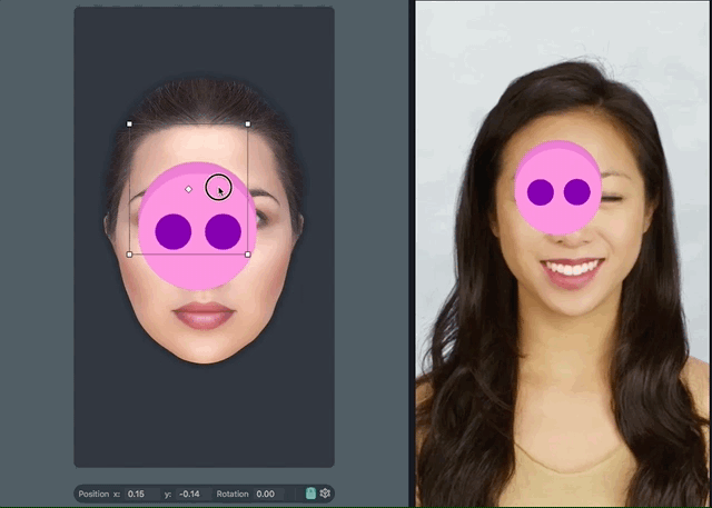In the Scene panel, you can position and resize your assets to fit the face in the Preview panel. You can also rotate the selected Face Image by holding down Alt and dragging inside the Face Image container.
