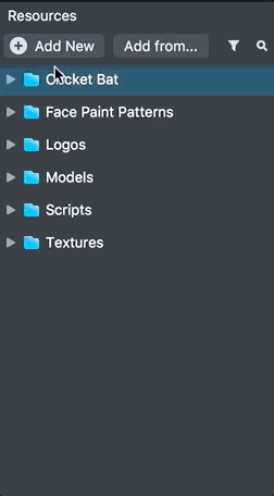 To bring in your own image as a face paint pattern texture, select + -> Import Files in the Resources panel, or drag and drop any image from your computer to the Resources panel.