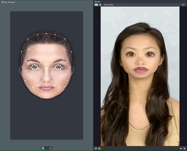 Select one of the Liquify Points to modify it. In the Scene panel, you can change the position of the Face Liquify Effect by dragging the blue circle.