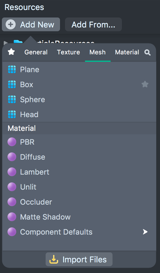First, import your own custom 2D artwork into the template by clicking + in the Resources panel followed by Import Files. Alternatively you can drag and drop your 2D image into the Resources panel.