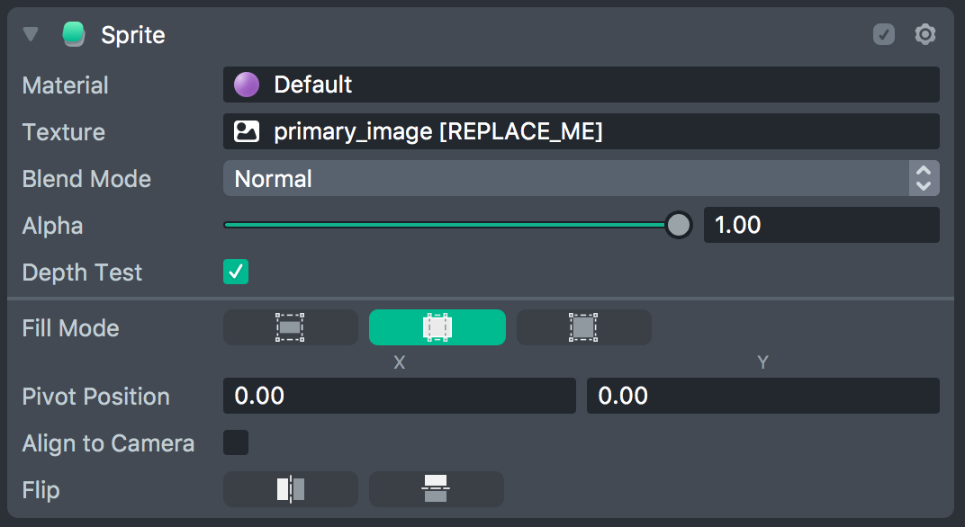 Next you will need to assign your artwork to the Screen Image object. Locate the object named Screen Image [EDIT_ME] in the Objects panel and assign your texture to the Texture field of the Image component. It is recommended that you keep the Screen Image in Fill mode so that it fills the entire screen.