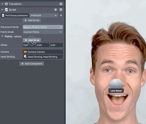 Stick In Between Points: This option attaches all the child content of the script to a Face Landmarks position.