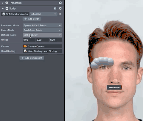 Since Face Landmark uses 2D space to track the points on the face we need to get the depth of each point with the help of the Head Binding component.
