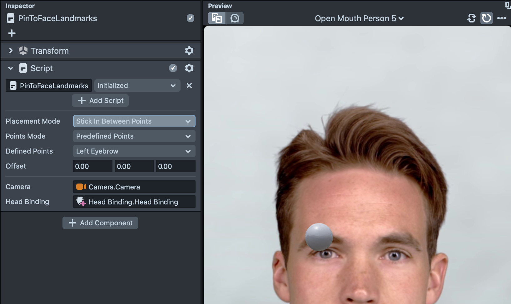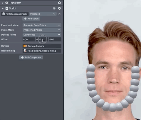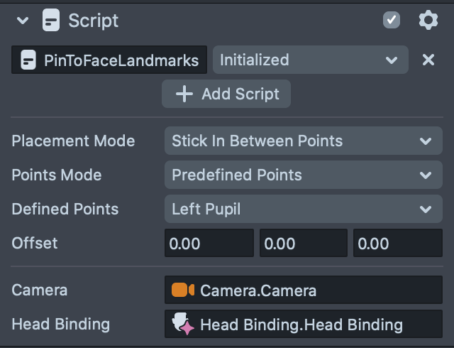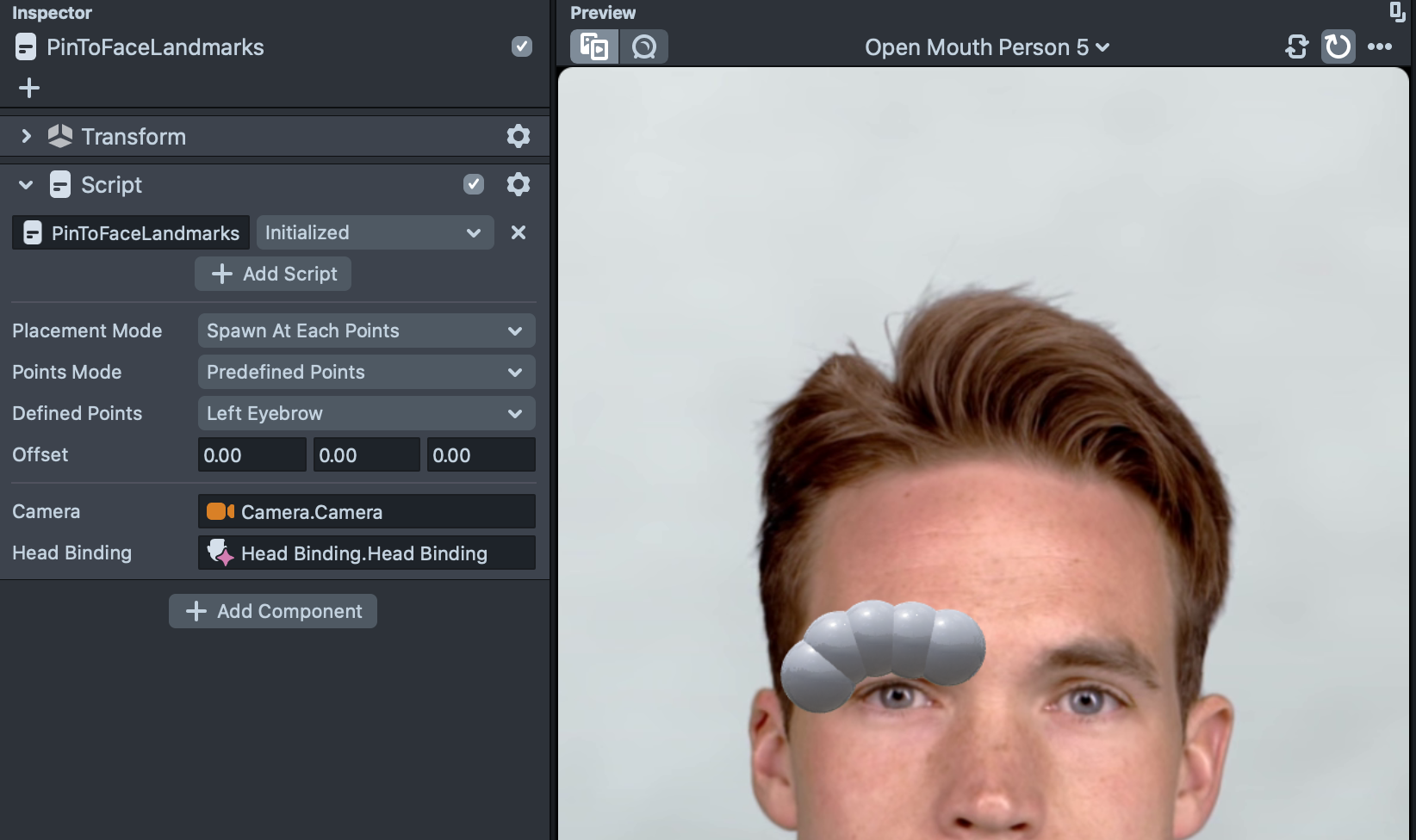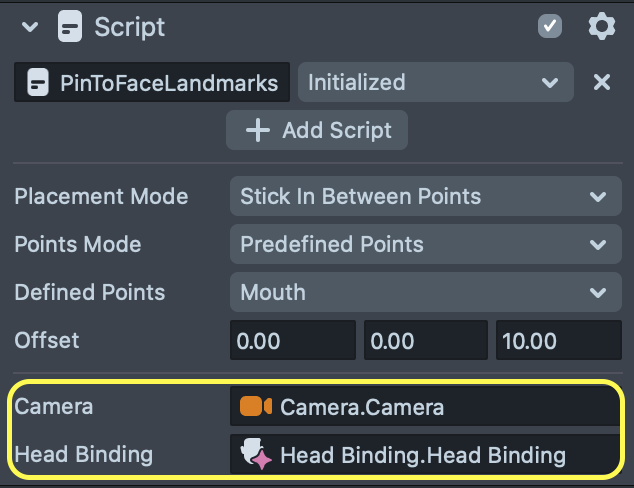 Like before, to use the script, we need to specify the Camera and the Head Binding so the script can access the landmarks.