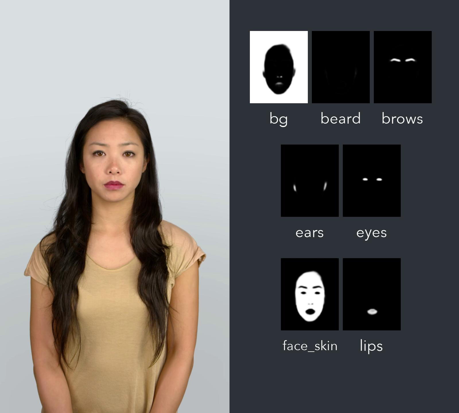 Conversely, the Face Segmentation Custom Component outputs seven different Image Textures, each corresponding to a different element of a user's face: