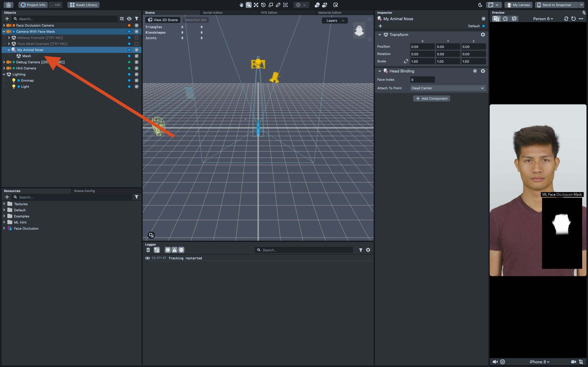 This section guides you through creating an Animal Nose Lens that works with the Face Occlusion Custom Component.