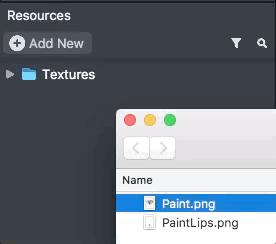 Once you've exported your texture(s), you can add them to Lens Studio by dragging and dropping them into the Resources panel.