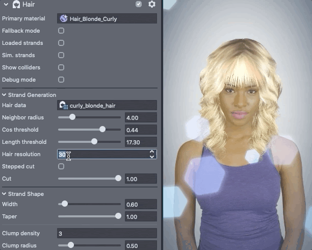 You can also adjust hair smoothness with the Blur Multiplier parameter on each hair’s material, see detailed explanations under the Hair Materials section below!
