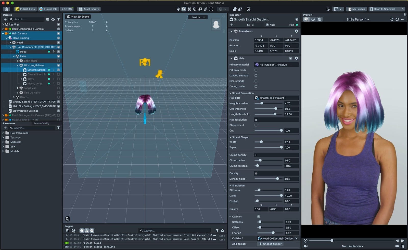 The hair component can be quite performance heavy, especially for slower devices. To make sure your lens can run smoothly on most devices, here are some tips on keeping your hairstyle optimized: