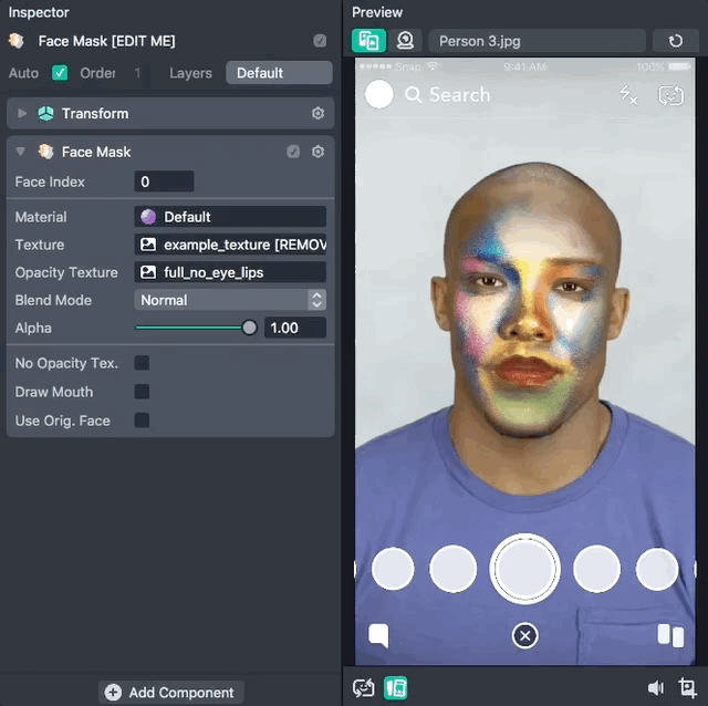 With Lens Studio you can easily create Face Lenses by importing an image of a face. This technique is perfect for creators who specialize in makeup, face painting, and other non-digital media. The Photo Template shows you how to import an image, align it to the face and make specific areas visible like just the lips.