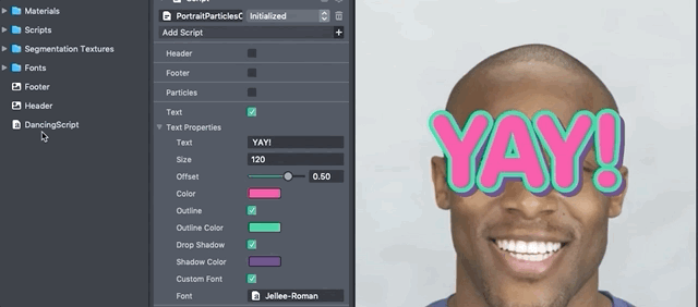 A custom font can be used for the text as well. You can change the font by changing the Font property to a font you’ve imported into Lens Studio.