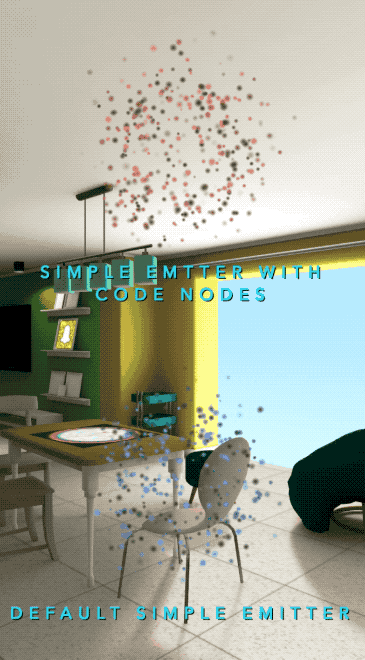 In this example, the entire Simple Emitter asset was recreated using only Code Nodes. The output is the same, but the graph loads much faster in Studio due to fewer node connections that need to be evaluated.