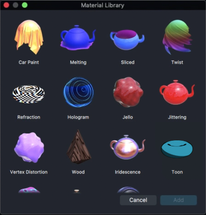 Then, in the popup window, select the material you want to add, and press Add.