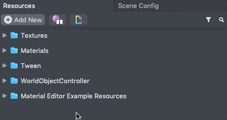 Additionally, you can customize the material itself and how it works. To customize each material, select the material in Resources panel and then select the Material Editor button in the Inspector panel or by double clicking on the material itself.