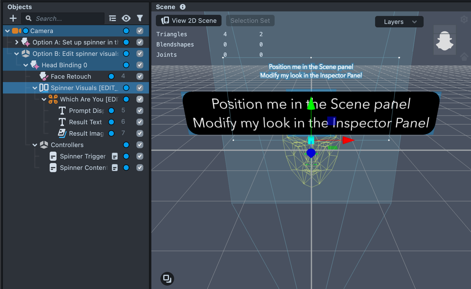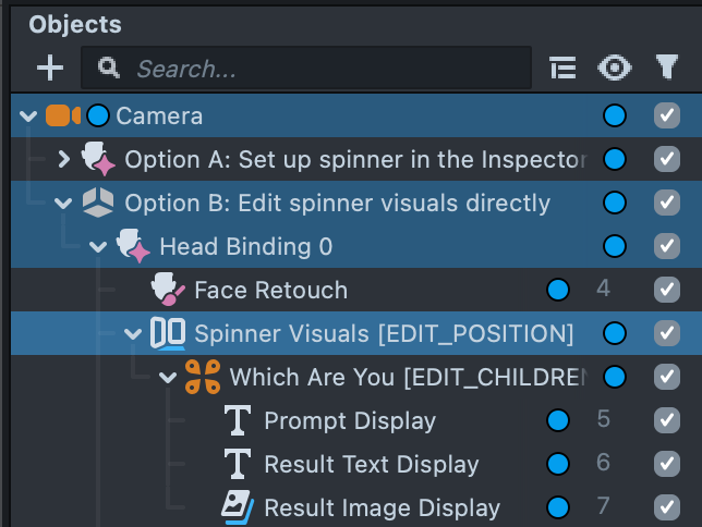 If you look at Option B, you can see the Spinner Visuals object is expanded. You can select each object to modify how the spinner looks!