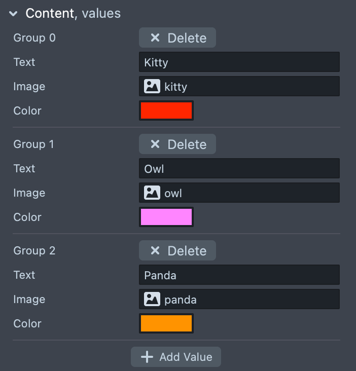 It is also possible to add content to the spinner via a script. This is useful if you want to quickly change the data.