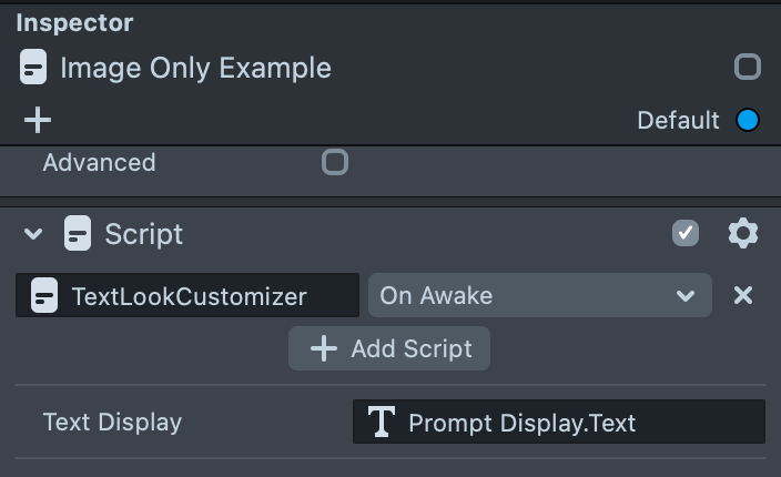 For example, notice below how there is a Text Look Customizer whose Text Display field is a reference to the aforementioned Prompt Display.