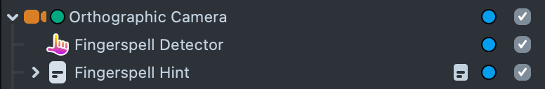 The ASL Fingerspelling template has two main objects: Fingerspell Detector and Fingerspell Hint