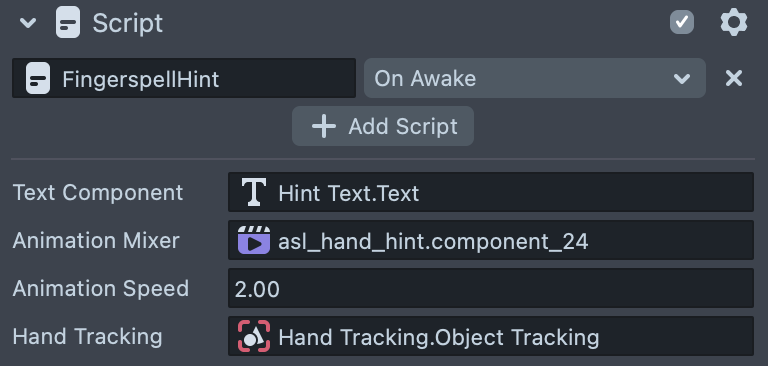 The template comes up several script examples that show how to use Fingerspelling Custom Component for different experiences.