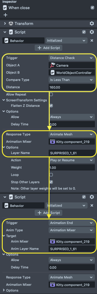 In this example, you can see how multiple Behavior scripts can be linked together to create more interactive experiences, even a list of them!