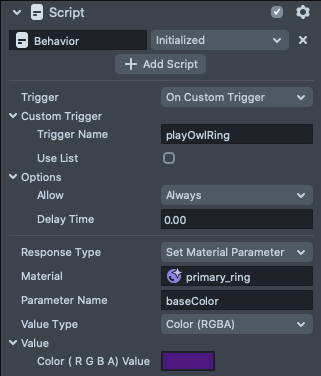 Behavior scripts can communicate with other Behavior scripts using Custom Triggers. In addition you can use Custom Triggers to communicate between your own scripts and Behavior