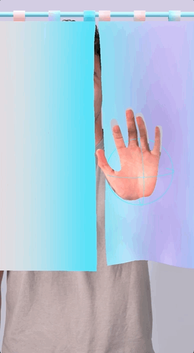 The hand curtain example uses hand tracking with a physic collider to interact with the cloth object. Enable the Hand Curtain Single Follow Object in the Objects panel and see the set up.