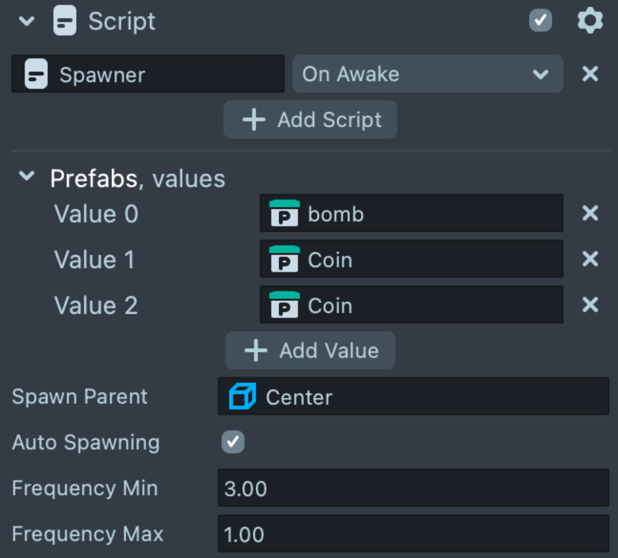 With Spawner Script, you can select the elements that you want to be randomly generated in the game.