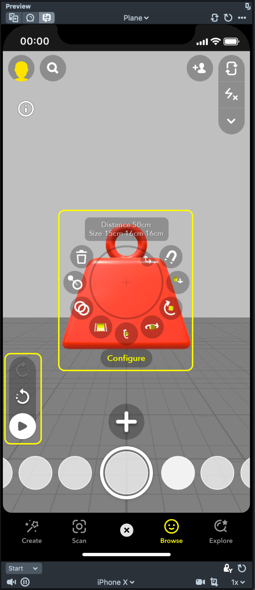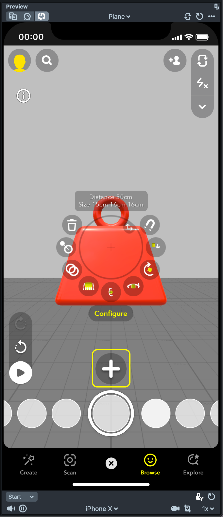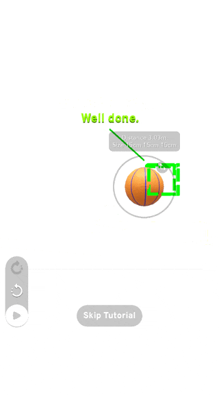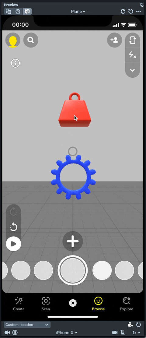 In the “Scale” puzzle you will learn how to use a manipulation button: the Scale Manipulator. Unlike the “Move” Manipulator, the Scale Manipulator requires dragging a Scale button before Snapchatters can adjust the scale of a selected 3D asset within a Lens. To complete the “Scale” puzzle, tap to select one of the weights. A menu will pop up around the weight. Hold the Scale button and then drag to increase the weight.