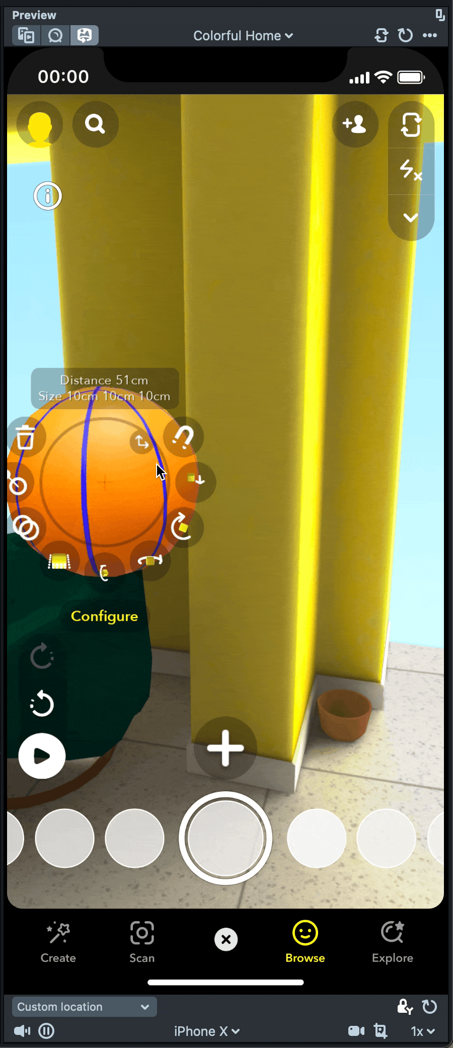 The “Move” puzzle demonstrates how the Move Manipulator lets Snapchatters move selected 3D assets in the Lens. To complete this puzzle, tap to select the ball again, and drag the selected ball to move it into the yellow box.