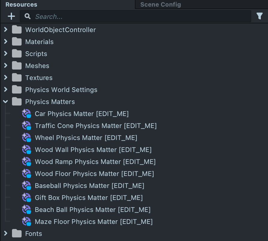 All of the Physics Matter resources used in this template are in the Physics Matters folder under the Resources panel.