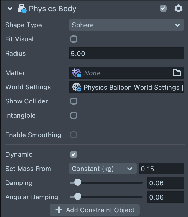 To learn more about the Physics Body Component, visit Physics Assets and Components.