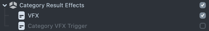 Find the attached Scene Objects under Quiz Result Effects -> Category Result Effects: Category VFX Trigger Scene Object. Behavior Script attached to the Scene Object to trigger VFX when users finish the quiz.