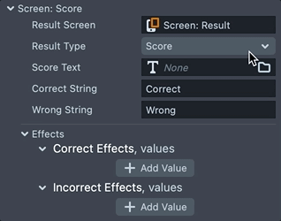 Correct Effects Array and Incorrect Array. Based on if the answer is correct or not, enable or disable Correct Effects Array or Incorrect Array.