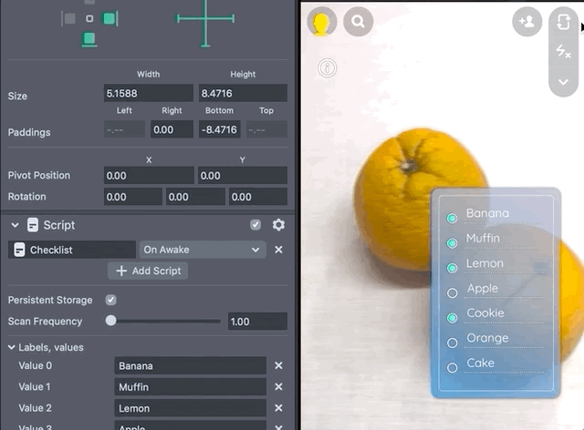 The Checklist example contains a list of custom defined labels and will mark them as ‘checked’ if they have appeared in camera.