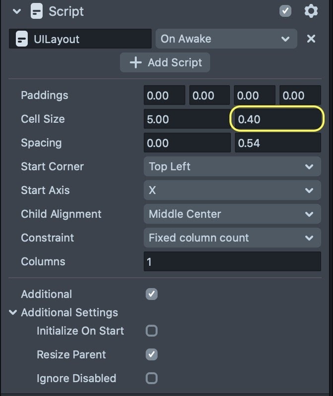 When changing the amount of items being checked, you may go to the UILayout script attached to the Item Parent object to change the y value of the Cell Size in order for items to populate the Checklist UI more evenly.