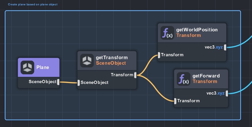Next, we’ll input our plane object, and use getWorldPosition and getForward (get the forward direction) to output its position and direction.