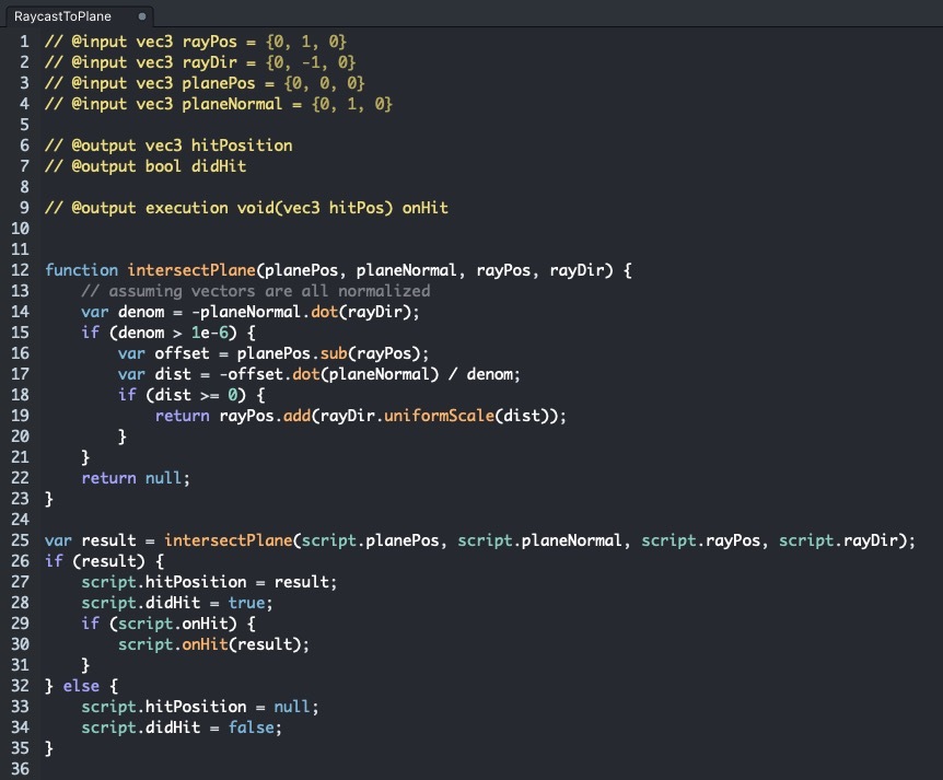 If we double click on the RaycastToPlane function node, we’ll see it’s a node made from a script.