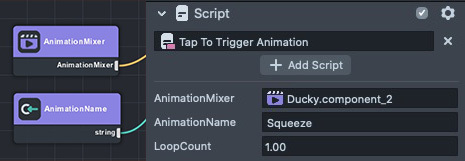 Then in our Lens in the preview panel, we can see the animation for this yellow duck gets played every time we tap on the screen.