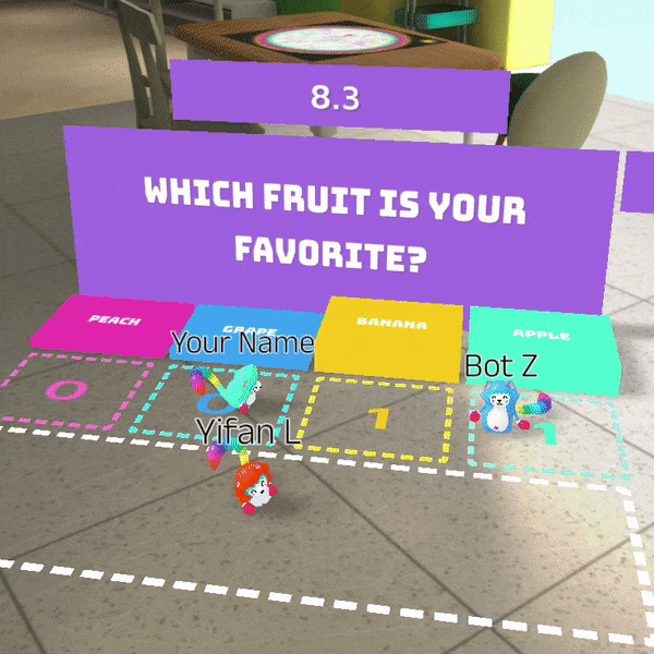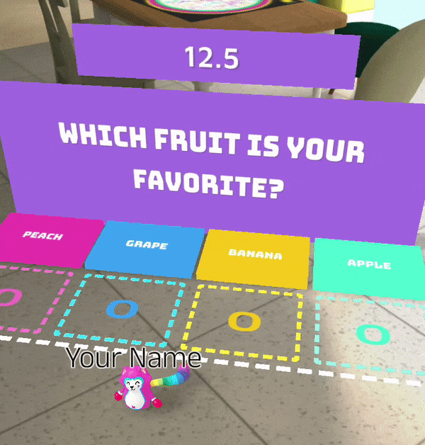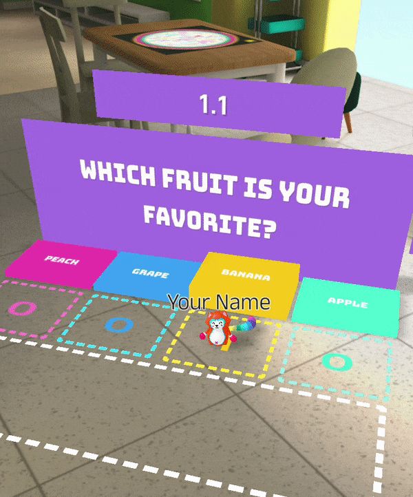 When a user joins the session, there is a random character instantiated on the voting board to represent the user. When the user taps on a button to vote, their character moves to the corresponding area to reflect the user’s selection.