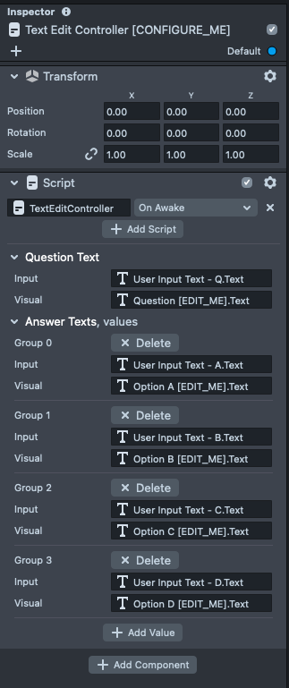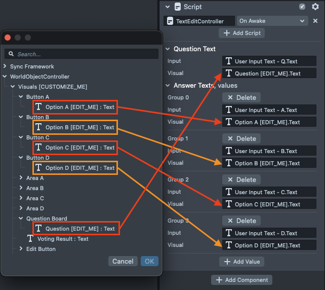 Text Edit Controller: This plugs in the script for enabling editing the voting question and option texts, and syncing the edited texts across the session.