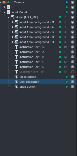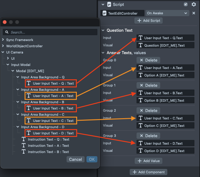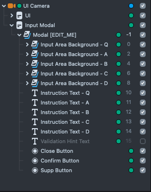 Input Modal: This plugs in the Input Modal (an asset from the Asset Library) we use for collecting users’ text input when editing the question and options.