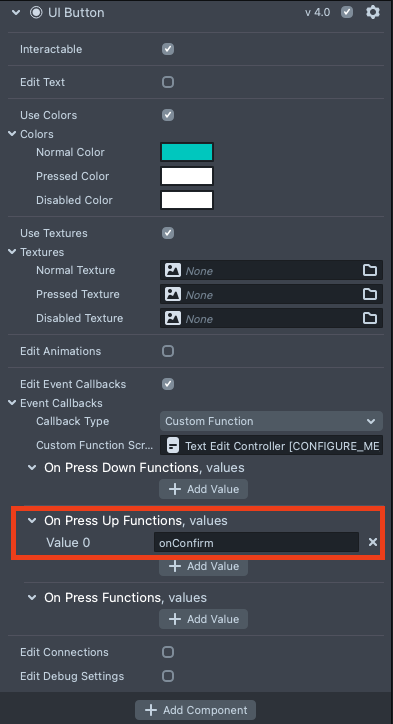 Then an onEditQuestionReceived() function in the TextEditController script is used to receive the event and update property values using the data received.