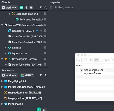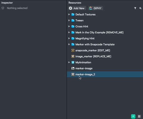Now, we need to tell the Lens what image to look for. In your Resources panel, click + -> Image Marker. Then in the file selection window, choose your image.