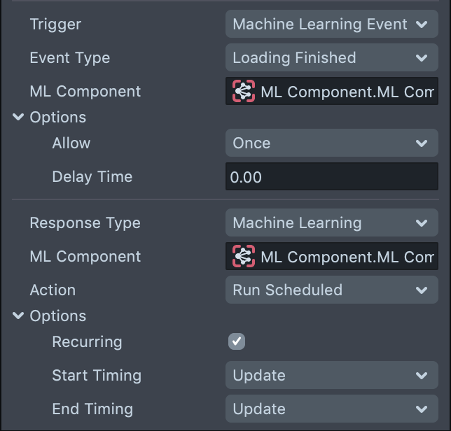 You can modify these settings if you want different behavior ( for example to run MLComponent on Tap or else)
