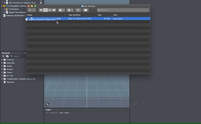 This template relies on a machine learning model to predict the probability of something. The template comes with an example binary classification model, but you can make your own model to predict whether something is in the camera feed or not. While the creation of models happens outside of Lens Studio, you can go through the following section to learn how to train your own binary classification model.